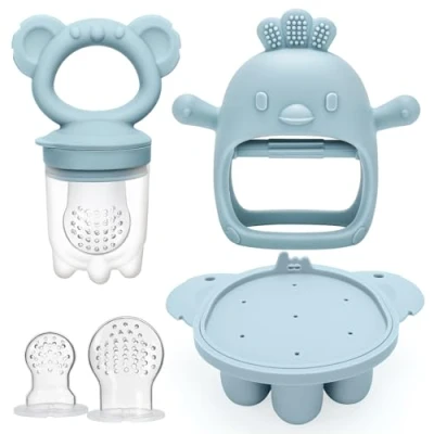 Breastmilk Popsicle Molds for Infant: You can put breastmilk, purees, juices or some baby food to freeze, place the frozen pieces inside the feeder to create a mini popsicle, your baby will enjoy chewing and tasting it, help soothes sore gums and keep them. Toddler Utensils: This baby kit includes 1 baby food freezer tray, 1 pacifier feeders, 1 silicone teether toy, 2 extra silicone nipples, simplifying feeding and teething needs. Ensuring convenience and efficiency for modern parents. Easy-to-hold Handle: Small tray freezes the perfect size pieces that fit perfectly into the food feeder, great for teething and self feeding, The CLDY fresh fruit food feeder is the perfect way to introduce solids to babies without the risk of choking. Soothe Baby Sore Teether:Imitate pacifier&nipple shape, and the soft silicone touch point massage granules privide the teething pain relief and satisfy different bite experiences. Silicone pouch with small holes only allow small, digestible pieces to pass through. Food grade silicone: the cute chick glove silicone teether improve baby's teeth occlusion ability, it will helps gum stimulation and teeth growth. Baby fruit food feeder is design with a big circular rabbit head handle, allows to easy grap for little hands.