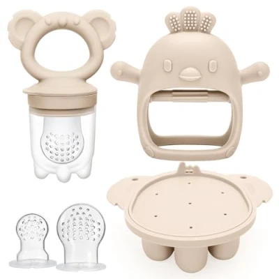 Breastmilk Popsicle Molds for Infant: You can put breastmilk, purees, juices or some baby food to freeze, place the frozen pieces inside the feeder to create a mini popsicle, your baby will enjoy chewing and tasting it, help soothes sore gums and keep them. Toddler Utensils: This baby kit includes 1 baby food freezer tray, 1 pacifier feeders, 1 silicone teether toy, 2 extra silicone nipples, simplifying feeding and teething needs. Ensuring convenience and efficiency for modern parents. Easy-to-hold Handle: Small tray freezes the perfect size pieces that fit perfectly into the food feeder, great for teething and self feeding, The CLDY fresh fruit food feeder is the perfect way to introduce solids to babies without the risk of choking. Soothe Baby Sore Teether:Imitate pacifier&nipple shape, and the soft silicone touch point massage granules privide the teething pain relief and satisfy different bite experiences. Silicone pouch with small holes only allow small, digestible pieces to pass through. Food grade silicone: the cute chick glove silicone teether improve baby's teeth occlusion ability, it will helps gum stimulation and teeth growth. Baby fruit food feeder is design with a big circular rabbit head handle, allows to easy grap for little hands.