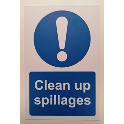 Clean up spillages Safety sign Self adhesive sticker 200mm x 150mm Digitally printed and laminated for extra durability Remove backing film and apply to dry, smooth, oil free surface., Manufacturer: KPCM Display ltd