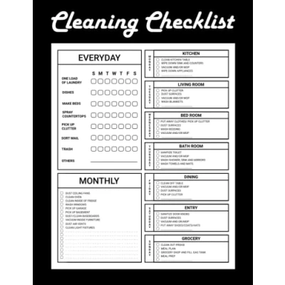 Cleaning Checklist: Daily Weekly and Monthly Schedule Checklist Planner Household Chores with Check Lists House Organizer