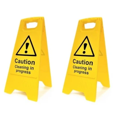 Cleaning In Progress Caution Floor Sign, Pack of 2 Heavy Duty A Boards, Double Sided Message, Lightweight & Easily Transportable