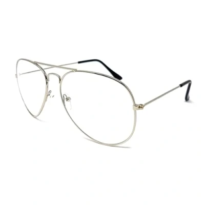 Clear Lens Pilot Style Glasses with UV400 Protection Unisex (Silver)
