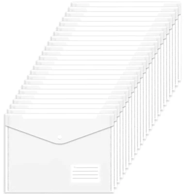 Clear Plastic Wallets A4 Folders 24PCS Popper with Label Pocket Document Files Envelope Wallet