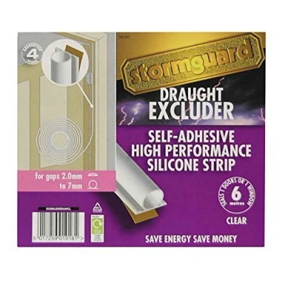 6 Metre roll Self adhesive high-performance silicon strip suitable for gaps of 2mm to 7mm, enough for one door or one window Four year manufacturers guarantee Excellent alternative to white/brown/black coloured window or door seals as this product is transparent and not readily as visible.