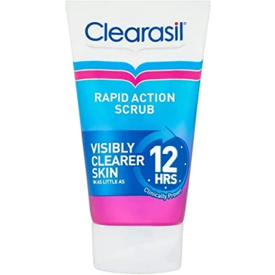 CLEARASIL RAPID ACTION TREATMENT SCRUB – For visibly clearer, smoother skin VISIBLE CLEARER SKIN IN AS FAST AS 12 HOURS – Proven rapid action formula to help fight spots DERMATOLOGICALLY TESTED – Designed to be effective yet gentle enough for daily use EXFOLIATING SCRUB WITH MICROBEADS – Helps unclog pores and remove dead skin cells TARGETED ACTION FOR SPOTS – Works fast on breakouts and helps prevent new ones from forming