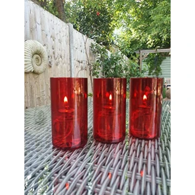CLEARCRAFT 3 x Indoor Or Garden Oil Candle Burner Shades With 6 24 Hour Burning Time Smokeless, Odourless Liquid Wax Candles. Perfect Lights For Barbecues (Red)