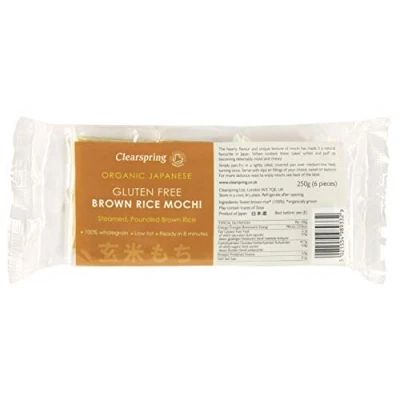 The hearty flavour and unique, chewy texture of mochi has made it a natural favourite in Japan. When cooked, these ‘cakes’ soften and puff up becoming delectably moist and chewy Simply pan fry in a lightly oiled, covered pan over medium-low heat, turning once. Serve with dips or fillings of your choice, sweet or savoury. Our favourite is a tamari and maple syrup dip but see below for more recipe suggestions Mochi is made from a short grain japonica glutinous brown rice which has been steamed, pounded into a paste and shaped into blocks and dried. The best mochi has a perfect balance between viscosity and elasticity but this requires exceptional skills as it is especially difficult to perfect when using brown rice. Gluten Free / 100% wholegrain / Low fat / Ready to eat in 8 min