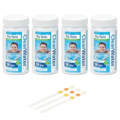 Includes 200 x clearwater dip test strips that make caring for your pool simple and easy Measures chlorine, PH and alkalinity: Measures various quality levels of swimming pool or spa water to indicate what chemicals are needed to prevent harmful bacteria entering your water Quick and easy to use - simply dip the test strips into the water and check the results on the handy printed colour chart Directions: Dip strip and remove immediately, hold strip level for 15 seconds, use simple-to-use guide on bottle to read the results Clearwater is a BISHTA approved member and recommended by brands such as Bestway and Lay-Z-Spa for reliable, safe and high-quality water treatment