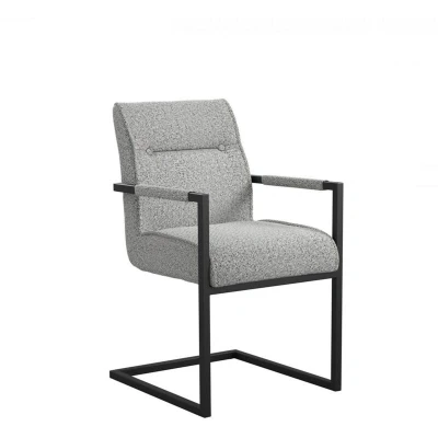 The Cleaver Chair combines comfort with contemporary style, upholstered in a Smoked Pearl Tweed Fabric for a subtle, modern look. Featuring a Matte Black Metal frame with cantilever legs and fabric wrapped arms, this chair offers both stability and sleek design. The padded seat and backrest include a refined button detail, adding a touch of sophistication. Features: Smoked Pearl Tweed Fabric Matte Black Metal Frame Cantilever Legs Button Detail Modern Design Care/Maintenance: Clean damp cloth or soft brush Trend: Essential Primary Colour: Smoked Pearl Secondary Colour: Black Primary Material: Tweed Secondary Material: Metal Secondary Finish: Matte Dimensions & Weight: Dimensions:L61.5 x W53.5 x H91.5 cm Weight: 11.5 kg . Cleaver Arms Dining Chair (Pack of 2) - Tweed/Metal - Smoked Pearl/Black - Partially Assembled . Delivery is FREE to UK mainland excluding the following postcodes, where a surcharge may apply. AB, DD, HS, IV, KW1-14, KY, PA1-19, PA20+, PH, W1, NW1, WC1, WC2, EC1, EC2,