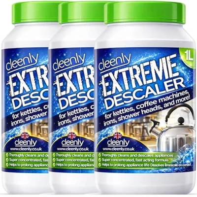 Cleenly Extreme Descaler for Kettles, Coffee Machines, Shower Heads, Irons, and More! (3 x 1 Litre) Super Strong Liquid