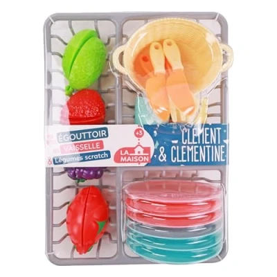 FUN YOU: In the day, your child can have fun imitating you to do household chores with this dish drawer. Set composition: in total the set consists of 21 pieces including a drainer, 6 plates, 6 glasses, 4 velcro vegetables, a basket and cutlery. This box is mainly made of plastic. It is perfect for children aged 3 and up. For playing outside: can be used both indoors and outdoors, this dish drying rack allows you to play alone or with several for long hours. A GREAT GIFT - Sturdy and timeless, this dish drying rack is the ideal gift for young lovers or household enthusiasts. CLÉMENT & CLÉMENTINE: A collection of realistic toys and accessories to recreate moments in life of Dad and Mum. Play like big ones with a full range aimed at the little ones., Manufacturer: MGM