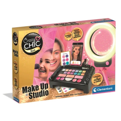 Clementoni Crazy Chic Make Up Studio: Illuminated Set with Washable Cosmetics & Professional Brushes for Kids (6+ Years )
