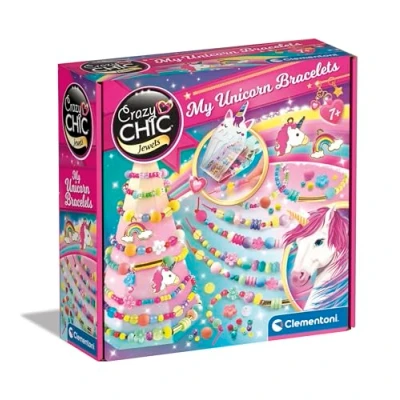 Clementoni Creative set Crazy Chic My Unicorn Bracelets, Handmade Bracelets Kids, Making Kit, Friendship Jewellery For Children, Art And Craft, Gift Girl 7, 18792