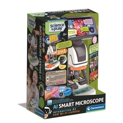 DIGITAL & OPTICAL MODES: Combines classic and tech-based microscope functions WI-FI CAMERA: View samples live on a smartphone via the dedicated app INTERACTIVE SLIDES: Includes 6 double-sided slides with videos, photos and quizzes CUSTOM EXPLORATION: Create and examine personalised samples with blank slides ADJUSTABLE LIGHTING: Two built-in lights with variable brightness for clear viewing, Manufacturer: Clementoni