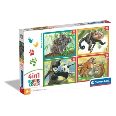 Clementoni Jigsaw Puzzle Baby Cuddles 12+16+20+24 Pieces Supercolor For Children 3 5 Years, Realistic, Animals, Gift Boy/Girls, Kids, Made In Italy, 21532