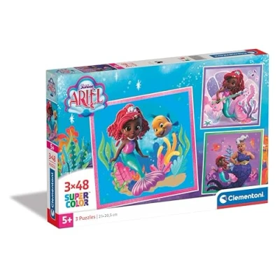 Clementoni Jigsaw Puzzle Disney Ariel 3 With 48 Pieces Supercolor For Children 5 7 Years, Disney, Cartoon, Gift Boy/Girls, Kids, Made In Italy, 25324