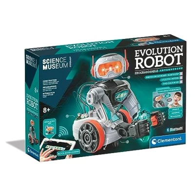 Educational & Fun: Learn robotics with the Evolution Robot! Build, code & play, developing problem-solving, logic & manual dexterity Interactive Play: Moving arms pick up & move objects. Features include motors, Bluetooth, speaker & LED lights for endless fun STEM Learning: Spark children's interest in science, technology, engineering & maths with a robot they can program themselves English App: Download the free app (available in English) with easy-to-follow instructions & coding tutorials Perfect Gift: The ideal present for curious minds aged 8 and up, nurturing a love of learning through play, Manufacturer: Clementoni