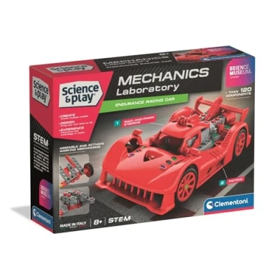 Clementoni Science&Play Mechanics Laboratory Le Mans Racer Red, STEM Building Set, For Kids 8+ Years, Made in Italy, 61573