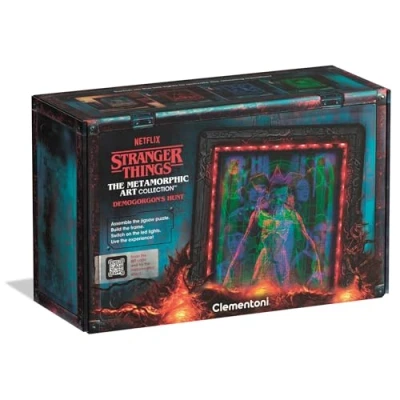 AmazonRELIVE AN ICONIC BATTLE FROM STRANGER THINGS: The interactive frame, along with the 520-piece puzzle inside, recreates the epic showdown between Eleven and the Demogorgon, transforming with LED lights to create a dramatic and atmospheric scene full of excitement and mystery. DUAL VISUAL EXPERIENCE: In normal lighting, the image appears rich and detailed. But in the dark, the LED strip reveals a whole new scene with supernatural tones. It’s not magic — it’s the Upside Down coming to life, for a truly immersive experience every real fan will love! ALL-IN-ONE KIT: Includes the puzzle (49 x 36 cm), a frame to assemble, glue, a poster, the LED unit and bright LED light, and instructions. Everything you need to build and display your masterpiece. PERFECT GIFT FOR STRANGER THINGS FANS: An interactive image that does more than just entertain, it brings iconic moments from the series to life with a one of a kind design that fans will love! PART OF THE METAMORPHIC ART COLLECTION: Discover the rest of the artwork collection inspired by Stranger Things and bring home the most iconic scenes with changing designs… just like reality in the Upside Down!, Manufacturer: Clementoni