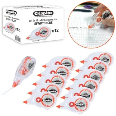 ➡ "Eras'ink Roller Correction" is a fast and accurate dry corrector, which offers a clean frontal removal and immediate rewriting. When you apply it, no need to let it dry, this roller deposits a white correction strip that is already dry on which you can immediately rewrite with a quality opaque tape. The 4.2mm width strip is perfectly suited to the lines of notebooks. It allows you to erase handwritten or printed texts in no time at all! The strength and length of the tape will allow you to correct up to 8 m. 👍 As for its size, perfect to slip into a pencil case, has an easy grip for adults and children. It will accompany you to the office and school! It is ambidextrous and suitable for both left and right handed users. If the band is relaxed, don't panic! Just unroll the concealer as when you apply it until it is stretched again.