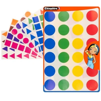 LARGE QUANTITY: This package includes 6 sheets for a total of 144 different color stickers (8 colors). They can be glued to different surfaces: paper, wood, cardboard, glass, plastic... SIMPLE TO USE: Cut out, they are easy to grip by the child in autonomy who learns to develop his fine motor skills. At first, he struggles to peel off the sticker from the board, the best will be to give it in his hand. Then, it will become more independent to use the stickers. Suitable for children from 2 and 3 years old. Repositionable: The stickers can be repositioned so that the child retrieves his sticker on any surface without damaging it and sticking them back on another. EASIER LEARNING: Geometric stickers are ideal for learning shapes, colors, dimensions, or even for learning to count. They allow you to carry out a lot of creative activities, according to the imagination of children, which can layer them, align them... They are also used in offices to classify files and make inventories! HIGH QUALITY: At Cleopatra, you never forget that we are aimed at children. This is why the stickers are made with high quality paper and non-toxic water-based ink., Manufacturer: Cléopâtre