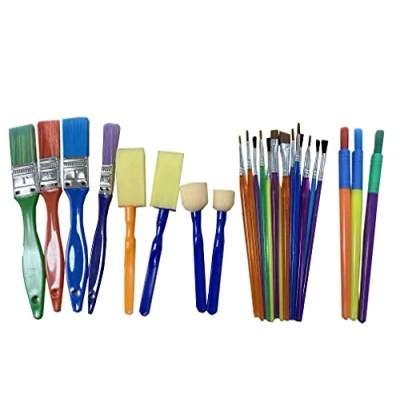 The set consists of brushes with soft bristles for painting with gouache or acrylic paint, and brushes with harder bristles for example bonding activities. Set contents: 4 flat brushes, 3 round brushes, 2 foam brushes, 2 round foam pads, 14 flat and round brushes, of different sizes This brush assortment is perfect for creative activities at school or for home use, Manufacturer: Cleopatre