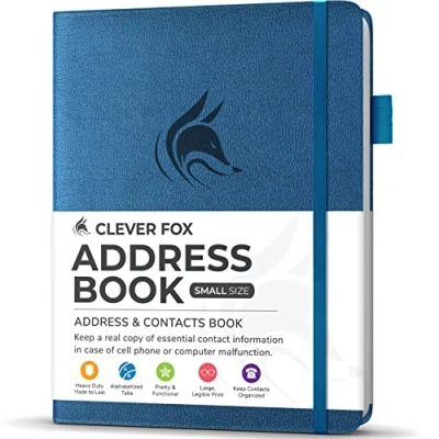 KEEP TRACK OF CONTACTS - Clever Fox Address Book with tabs promotes convenient contact organization, making sure you write down and safely store names, phone numbers, emails, and addresses of your acquaintances. ORGANIZED & SAFE - This telephone and address book has alphabetical A-Z tabs to minimize time spent searching for any particular contact. At the back of the medium sized address book organizer, you will find space for important phone numbers and dates. ALL INFORMATION IN ONE PLACE - This Logbook has space for all contact information you may need, such as the contact's name, address, phone, email, and notes. POCKET FORMAT & PREMIUM QUALITY – This mini address book for women and men measures 10.5 x 14 cm, and has an eco-leather hardcover, thick 120gsm paper, elastic, pen loop, bookmark, lay-flat binding, and pocket for loose notes and contact cards. 60-DAY MONEY-BACK GUARANTEE – We will exchange or refund your medium sized address book if you aren’t satisfied with your address book organizer for any reason. Reach out to us via message to refund your PU leather address book.