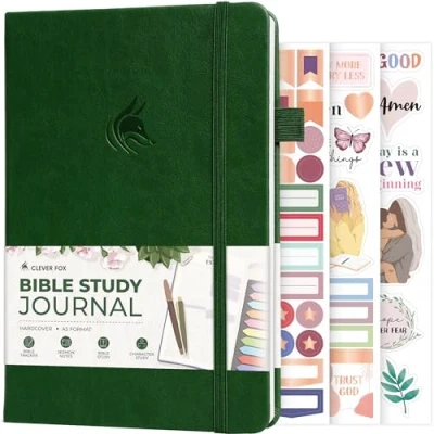 A GUIDED JOURNAL FOR IN-DEPTH BIBLE STUDY – Clever Fox Bible Study Journal features detailed writing prompts to guide your Bible reading journey, helping you keep organized reading notes and reflect on the verses you read. MONITOR YOUR BIBLE READING PROGRESS – A dedicated reading tracker included in this notebook for Bible notes will help you track your reading progress easily. To use it, simply tick off each verse you complete. SPACE FOR SERMON NOTES & CHARACTER STUDY – The womens bible study journal is divided into 3 parts, including sermon notes, verse study, and character study. The Study the Bible notebook also includes a prayer list and a list for your favorite verses. PORTABLE A5 FORMAT, STICKERS & USER GUIDE – This kjv note taking Bible journal measures 5.8 by 8.3 inches and has eco-leather hardcover, thick 120gsm paper, pen loop and lay-flat binding. The Bible study kit also includes stickers and user guide. 60-DAY MONEY-BACK GUARANTEE: We will exchange or refund your Study the Bible journaling kit if you aren’t satisfied with the womens study Bible niv for any reason. Reach out to us via message to refund your Bible accessories kit or faith-based gifts.