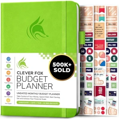 TAKE CONTROL OF YOUR MONEY & ACHIEVE YOUR FINANCIAL GOALS - Are you looking for the best monthly budget planner to keep your finances organized? Clever Fox Budget Book will help you keep your money organized, spend well and start saving. FIND THE BEST WAY TO ACHIEVE YOUR FINANCIAL GOALS - This budget organizer is not just a tool; it's a framework for achieving your financial goals. The finance planner helps you develop a strategy and break your ambitious goals into manageable monthly tasks. EASILY CONTROL YOUR SPENDING, DEBTS & SAVINGS - This money planner is undated and covers 12 months. Every month features a calendar, a budget plan, and an expense tracker. The budgeting planner also includes 8 savings and 12 debt trackers. USER GUIDE & BUDGETING STICKERS - Measuring 14.5 x 21 cm, this bill planner features a vegan leather hardcover, thick 120gsm paper, pen loop, elastic band, 3 bookmarks, pocket for receipts, budgeting stickers, and a user guide. 60-DAY GUARANTEE - We will exchange or refund your Budget Planner Organizer if you aren’t satisfied with your budgeting workbook for any reason. Reach out to us via message to refund your financial planner.