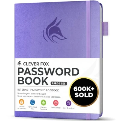 NEVER FORGET A PASSWORD AGAIN - Clever Fox password journal will help you create secure passwords and keep them safe and organized. This password book allows you to store all your passwords and other computer information in one place to find it easily. ALPHABETICAL A-Z TABS - Alphabetic tab system makes it easy to find any password you need. The book also has sections for most important passwords, wireless & email settings, software license information & additional notes. ELEGANT, SMART, PRACTICAL & SECURE PASSWORD ORGANIZATION - This password keeper book has been designed to be anonymous without an obvious title on the cover. For added security there is space to write hints instead of the password itself. LARGE SIZE & PREMIUM QUALITY - This internet address and password logbook with tabs comes in large size (18 x 25 cm). The password notebook has an eco-leahter hardcover, elastic band, pen loop, bookmark, pocket for notes, and thick 120gsm paper. 60-DAY MONEY-BACK GUARANTEE - We will exchange or refund your password organizer if you aren’t satisfied with your password organization for any reason. Reach out to us via message to refund your internet password logbook.
