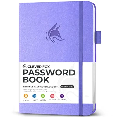 NEVER FORGET A PASSWORD AGAIN - Clever Fox password journal will help you create secure passwords and keep them safe and organized. This password book allows you to store all your passwords and other computer information in one place to find it easily. ALPHABETICAL A-Z TABS - Alphabetic tab system makes it easy to find any password you need. The book also has sections for most important passwords, wireless & email settings, software license information & additional notes. ELEGANT, SMART, PRACTICAL & SECURE PASSWORD ORGANIZATION - This password keeper book has been designed to be anonymous without an obvious title on the cover. For added security there is space to write hints instead of the password itself. MEDIUM SIZE & PREMIUM QUALITY - This internet address and password logbook with tabs comes in medium size (13.5 x 19 cm). The password notebook has an eco-leahter hardcover, elastic band, pen loop, bookmark, pocket for notes, and thick 120gsm paper. 60-DAY MONEY-BACK GUARANTEE - We will exchange or refund your password organizer if you aren’t satisfied with your password organization for any reason. Reach out to us via message to refund your internet password logbook.