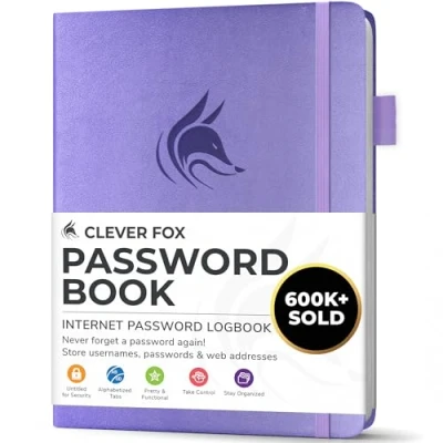 NEVER FORGET A PASSWORD AGAIN - Clever Fox password journal will help you create secure passwords and keep them safe and organized. This password book allows you to store all your passwords and other computer information in one place to find it easily. ALPHABETICAL A-Z TABS - Alphabetic tab system makes it easy to find any password you need. The book also has sections for most important passwords, wireless & email settings, software license information & additional notes. ELEGANT, SMART, PRACTICAL & SECURE PASSWORD ORGANIZATION - This password keeper book has been designed to be anonymous without an obvious title on the cover. For added security there is space to write hints instead of the password itself. POCKET SIZE & PREMIUM QUALITY - This internet address and password logbook with tabs comes in pocket size (10.5 x 14 cm). The password notebook has an eco-leahter hardcover, elastic band, pen loop, bookmark, pocket for notes, and thick 120gsm paper. 60-DAY MONEY-BACK GUARANTEE - We will exchange or refund your password organizer if you aren’t satisfied with your password organization for any reason. Reach out to us via message to refund your internet password logbook.