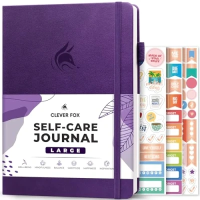 Clever Fox Self Care Journal Daily Reflection Notebook Mental Health & Personal Development Planner, Meditation Mood Log, Large (Purple)