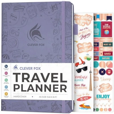 Clever Fox Travel Journal Vacation Planner with Budget Plan, Packing List, Expense Tracker & Trip Travelling Itinerary Organizer for Women, Men Couples A5 Size, Lavender