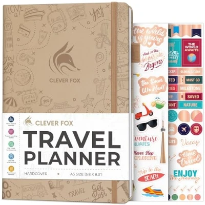 FULFILL YOUR TRAVEL DREAMS: If you are dreaming of seeing the world, Clever Fox Travel Journal is the travel organizer for you! Build your travel bucket list and start fulfilling it, explore new places, and plan organized, exciting and safe trips. Make long-lasting positive memories and live a life of adventure! A TRIP WORTH BEING REMEMBERED: This travel journal helps you experience your trip to the fullest and not waste a single moment: prepare lists of places to see and things to do, plan your itinerary and budget, and document memorable moments along the way. CAREFREE JOURNEY: This traveling Journal includes safety tips, helpful travel info, and a packing list to ensure you have everything you need while traveling. A5 FORMAT & PREMIUM QUALITY: This Travelling Journal measures 14.5 x 21cm and has an eco-leather hardcover, thick 120gsm paper, pen loop, elastic, bookmark, pocket for loose notes, stickers, and user guide. 60-DAY MONEY-BACK GUARANTEE - We will exchange or refund your travel Journal for women, men and couples if you aren’t satisfied with your travel itinerary organizer for any reason. Reach out to us via message to refund your vacation travel journal.