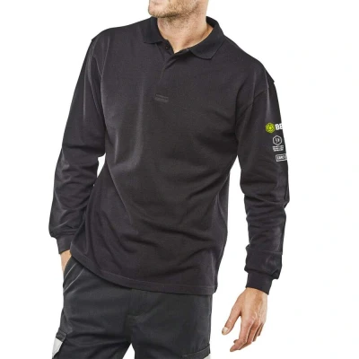 The Flame Retardant Anti-Static Arc Long Sleeve Polo Shirt provides a perfect blend of safety, comfort, and style, ensuring that workers remain protected while looking professional in demanding work situations. With its rich navy blue colour and carefully crafted features, it serves as a reliable choice for those prioritising safety without compromising on comfort or appearance.