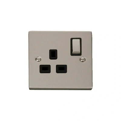 Click Deco 1 Gang 13A DP Switched Socket Outlet Pearl Nickel Insert Black
