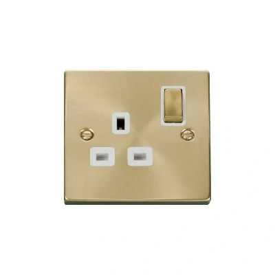 Click Deco 1 Gang 13A DP Switched Socket Outlet Satin Brass Insert White