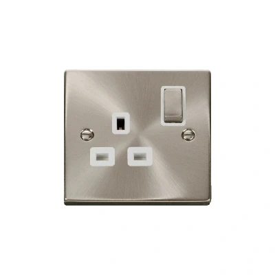 Click Deco 1 Gang 13A DP 'Ingot' Switched Socket Outlet Satin Chrome Insert White