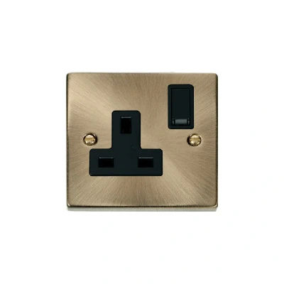 Click Deco 1 Gang 13A DP Switched Socket Outlet Antique Brass Insert Black