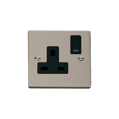 Click Deco 1 Gang 13A DP Switched Socket Outlet Pearl Nickel Insert Black