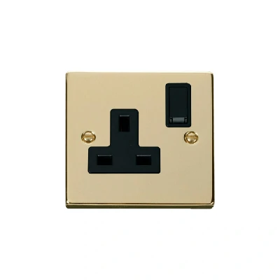 Click Deco 1 Gang 13A DP Switched Socket Outlet Polished Brass Insert Black