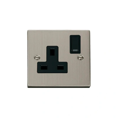 Click Deco 1 Gang 13A DP 'Ingot' Switched Socket Outlet Stainless Steel Insert Black