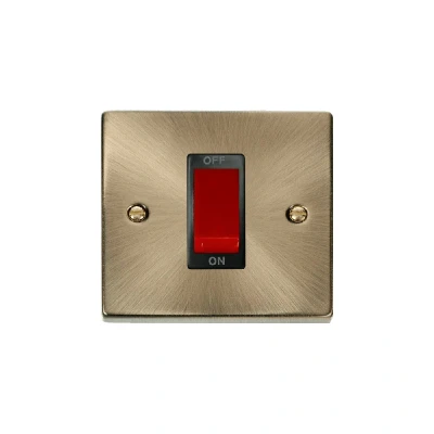 Click Deco 1 Gang 45A Double Pole Switch Antique Brass Insert Black