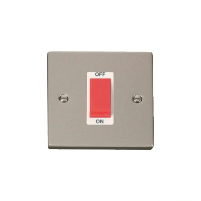 Click Deco 1 Gang 45A Double Pole Switch Pearl Nickel Insert White