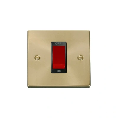 Click Deco 1 Gang 45A Double Pole Switch Satin Brass Insert Black