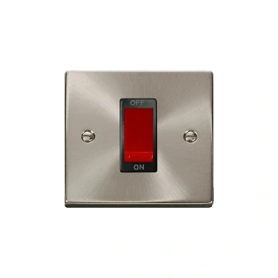 Click Deco 1 Gang 45A Double Pole Switch Satin Chrome Insert Black