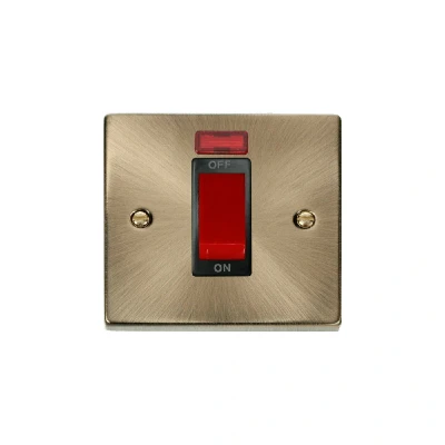 Click Deco 1 Gang 45A DP Switch with Neon Antique Brass Insert Black