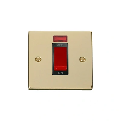 Click Deco 1 Gang 45A DP Switch with Neon Polished Brass Insert Black