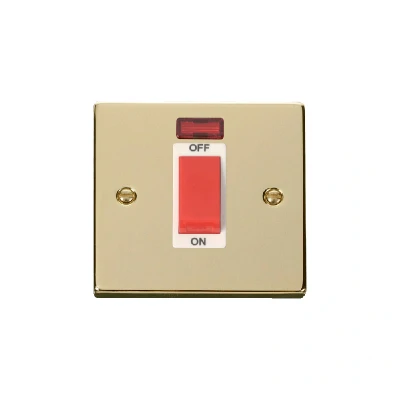 Click Deco 1 Gang 45A DP Switch with Neon Polished Brass Insert White